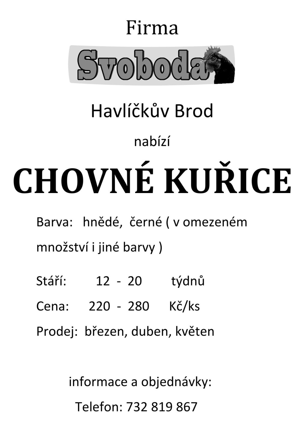 Firma Svoboda Havlíčkův Brod nabízí chovné kuřice