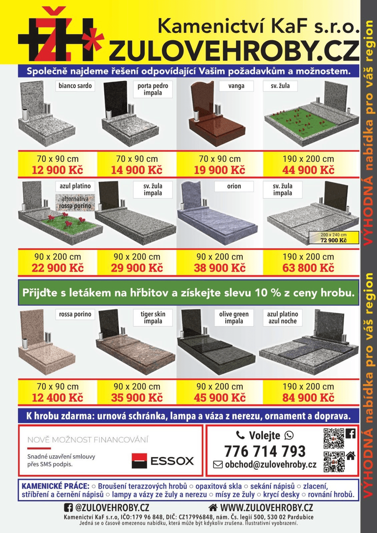 Kamenictví Žulové hroby.cz budou přijímat objednávky na opravu hrobů na hřbitově v Pavlově 11.6. a 18.6. od 13:00 do 13:20 hodin