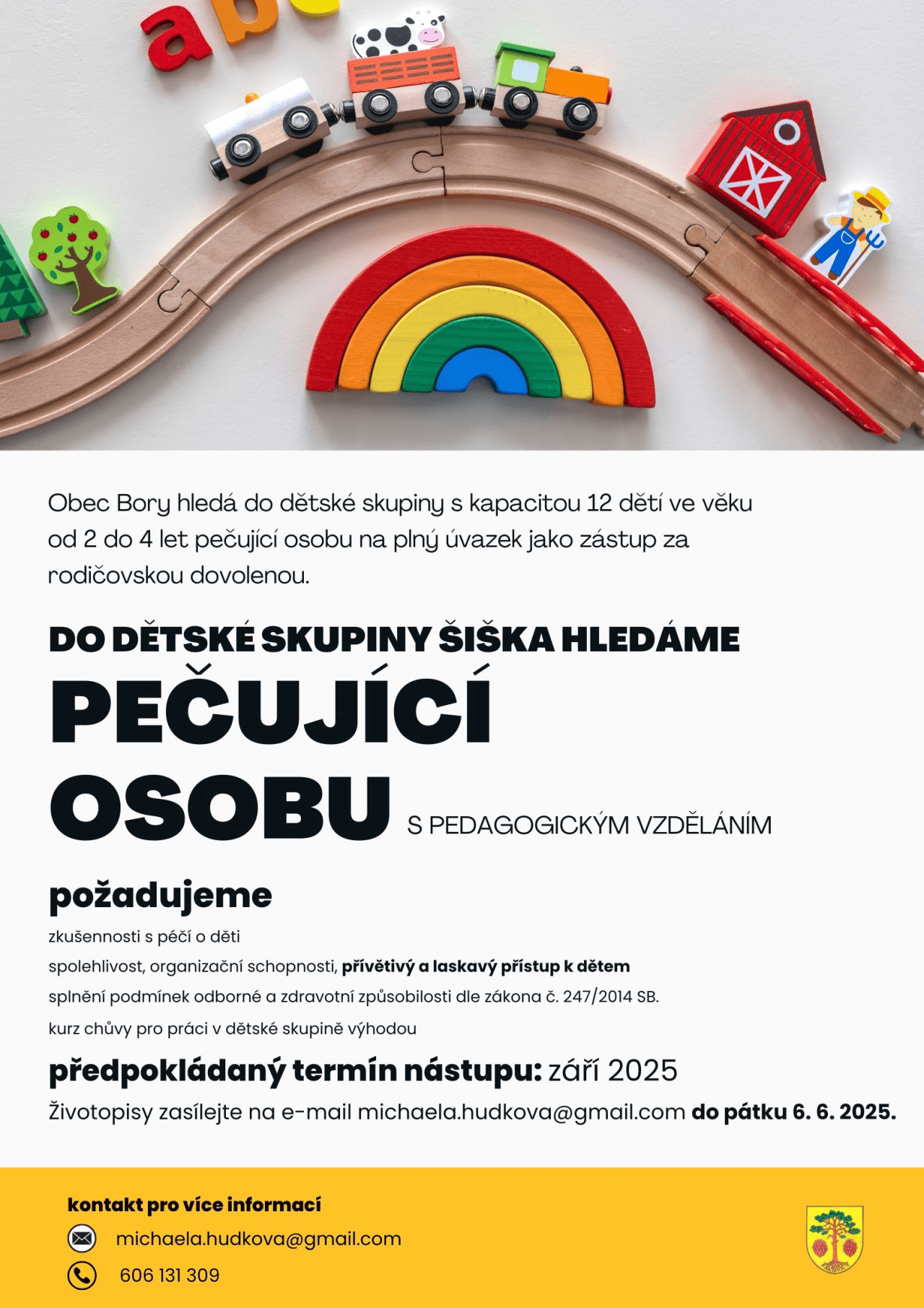 Obec Bory hledá do dětské skupiny Šiška pečující osobu na plný úvazek
