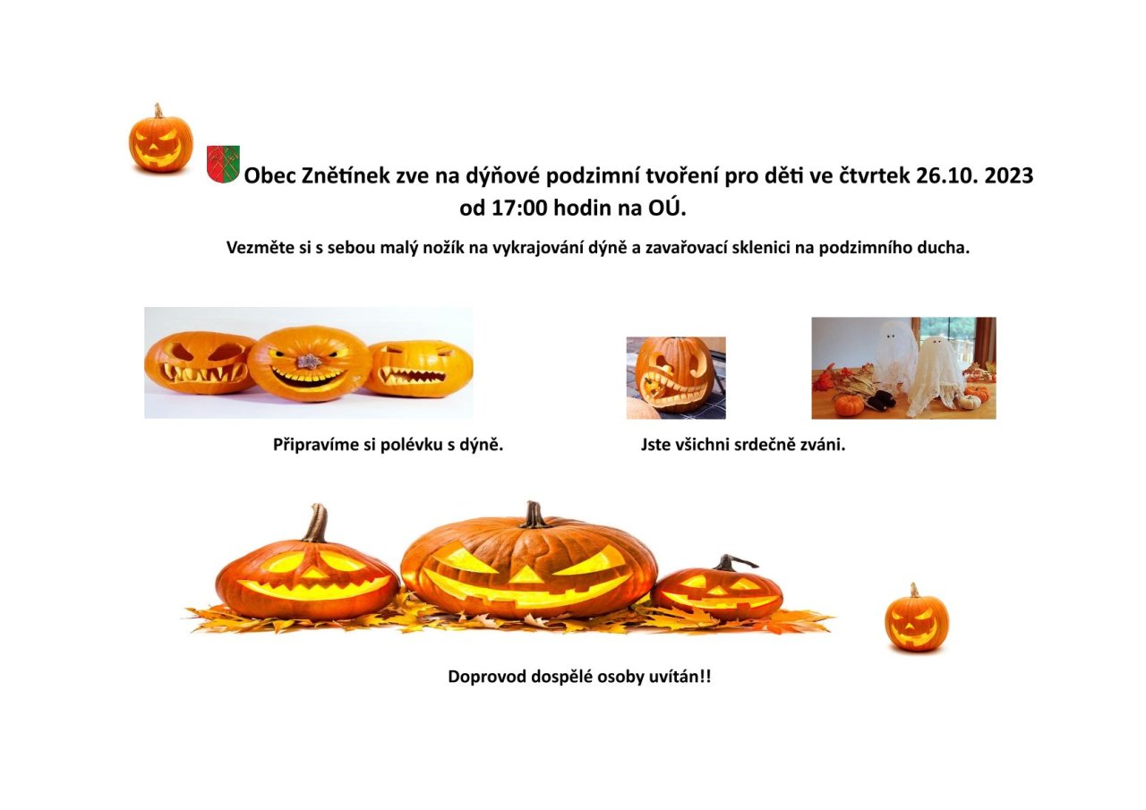 Obec Znětínek zve na dýňové podzimní tvoření dne 26.10.2023 od 17:00 hodin