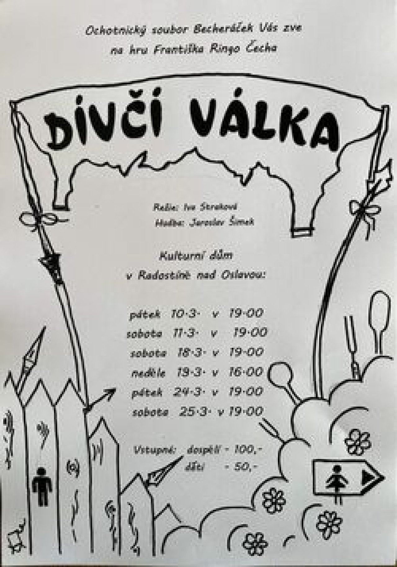 Ochotnický soubor Becheráček z Radostína nad Oslavou Vás zve na hru Františka Ringo Čecha - Dívčí válka