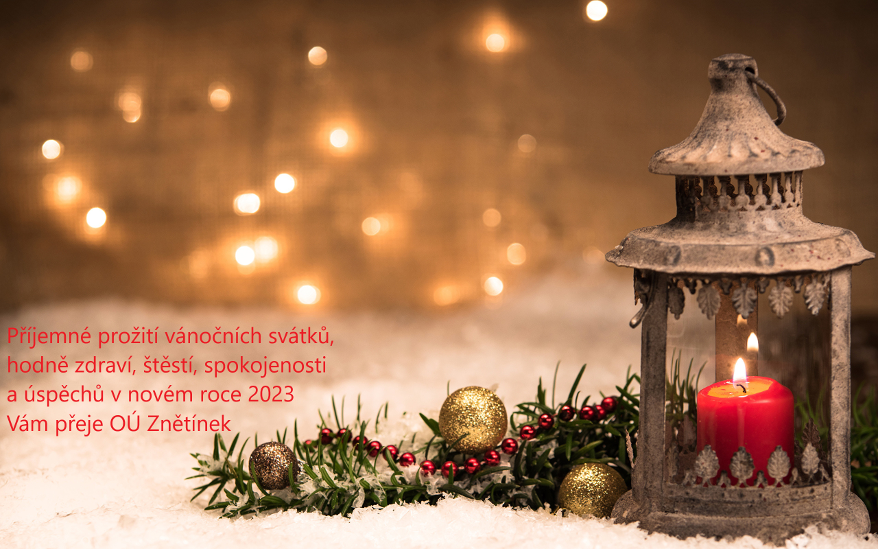 Příjemné prožití vánočních svátků, hodně zdraví, štěstí, spokojenosti a úspěchů v novém roce 2023 Vám přeje OÚ Znětínek