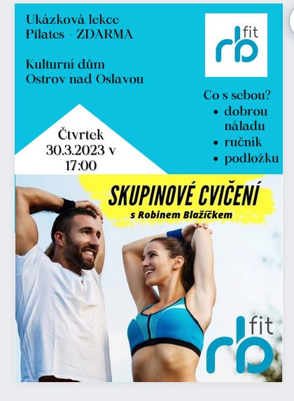 Skupinové cvičení s Robinem Blažíčkem KD Ostrov nad Oslavou dne 30.3.2023 v 17:00 hodin