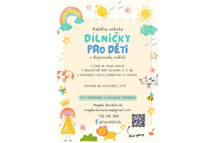 Dílničky pro děti každou sobotu v Centru Kopretině v Radosíně nad Oslavou 15.11.2024 Dílničky pro děti každou sobotu od 14:00 do 15.30 hodin v budově Centra Kopretiny v Radostíně nad Oslavou. Číst více