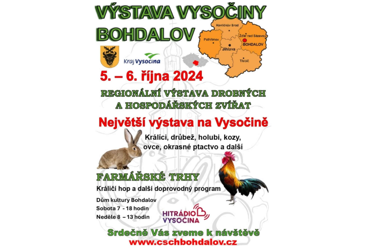 Regionální výstava drobných a hospodářských zvířat v Bohdalově 5.10.2024 -6.10.2024 24.9.2024 Číst více