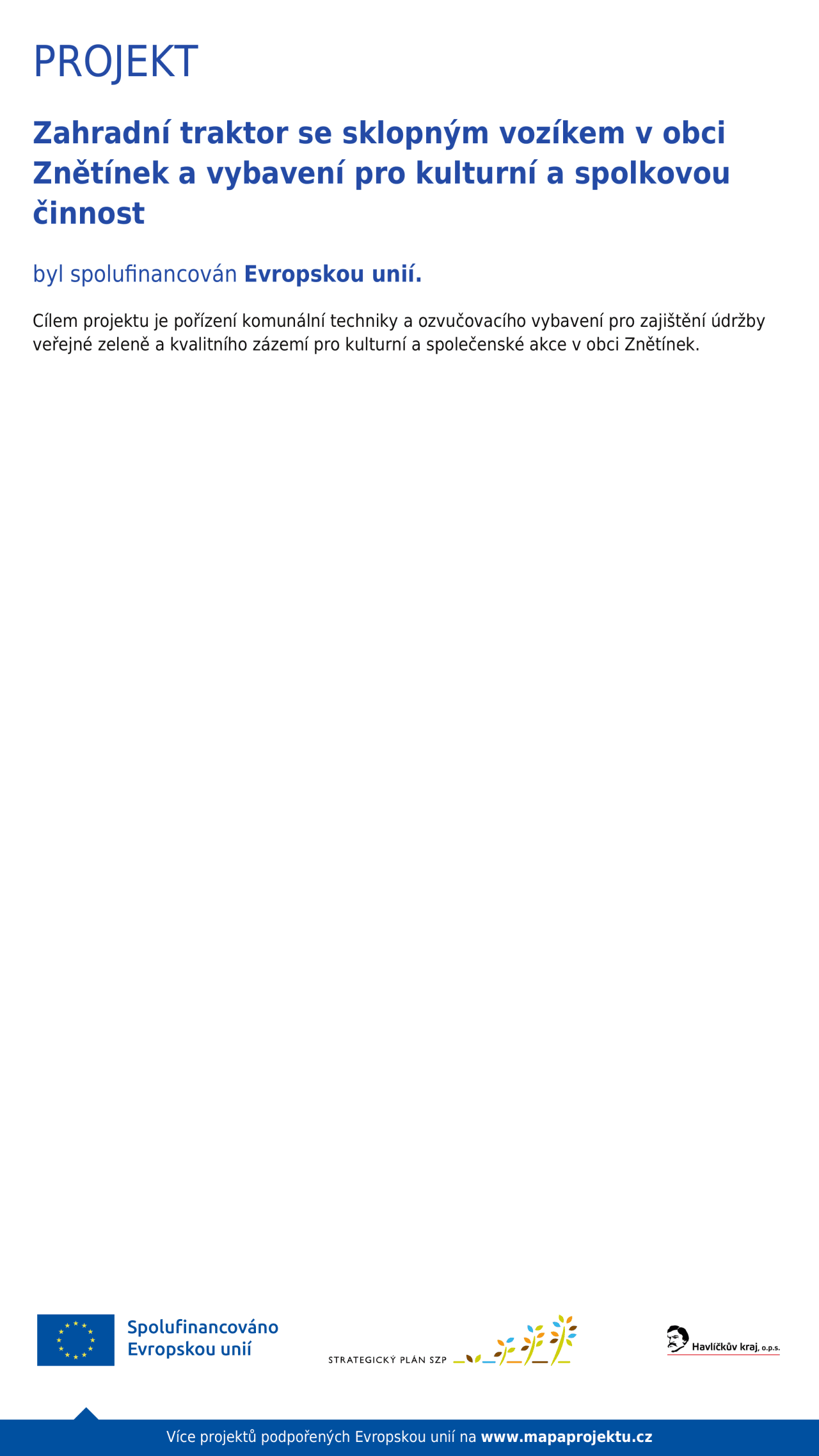 Projekt zahradní traktor se sklopným vozíkem v obci Znětínek a vybavení pro kulturní a spolkovou činnost