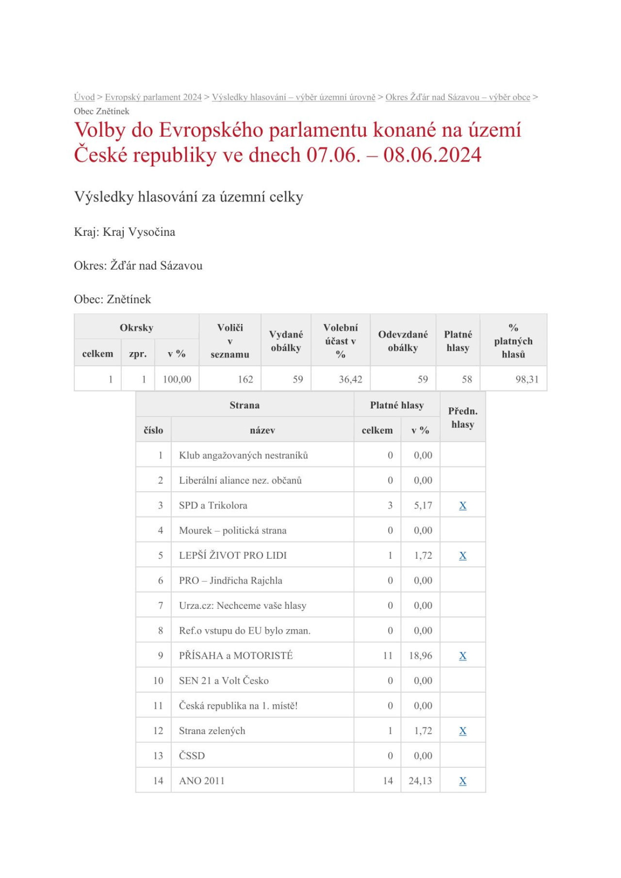 Výsledky - Volby do Evropského parlamentu 2024 na https://www.volby.cz/pls/ep2024/ep1311?xjazyk=CZ&xobec=597139&xvyber=6105